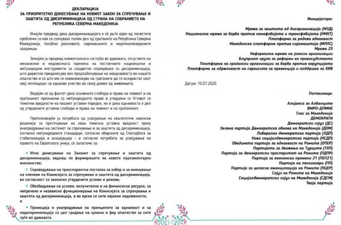 15:14 Македонија Партиите потпишаа Декларација за приоритетно донесување на Законот за спречување и заштита од дискриминација watch_later11. јули 2020. @ 15:14