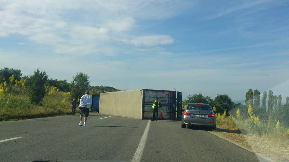 АМСМ соопшти дека на патот има превртено товарно моторно возило