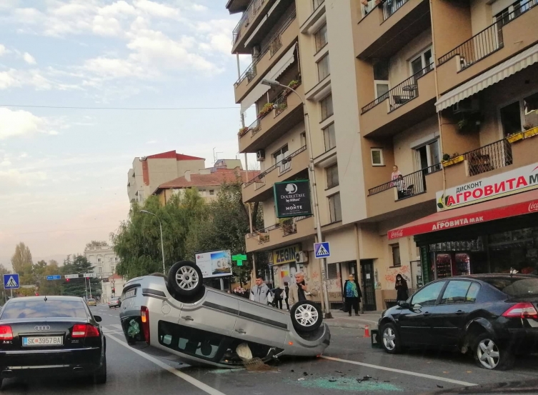 Се преврте автомобил во центарот на Скопје, на булеварот „Климент Охридски“ блиску до крстосницата со „Илинденска“, на само стотина метри од зградата на Владата, објави МКД.мк