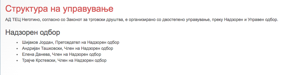 На веб страницата на ТЕЦ Неготино веќе е објавено неговото име. Според информациите ова лице кое е во роднинска врска со двајца високи функционери на власта, нема соодветно образование за оваа функција затоа што има завршено факултет за физичко образовани, кој нема никава врска со работењето на една термоелектро централа.