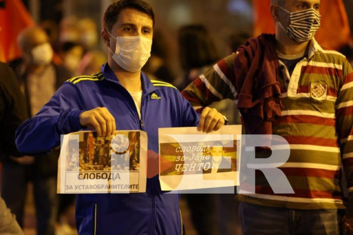 „40.000 долари стипендија за ќерката на Никола Димитров, 40.000 луѓе без работа“, „Талибанска правда“, „Трас трас судство, Луј Витон обвинителство“, „За тегла ајвар затвор, за убиството кај Млечен слобода“, е дел од паролите на вечерашниот протест на ВМРО-ДПМНЕ.