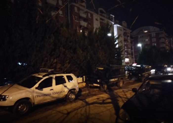 Меѓу нив има и припадници на Единицата за брзи интервенции на МВР кои што се подготвуваат да го обезбедат теренот на кој вечерва ќе протестираат членови на политички партии и организации од движењето “Македонија Блокирам” предводени од Јанко Бачев, Филип Петровски, Страшко Олумчев и други кои предходно протестираа пред домовите на Крсте Мукоски во Вевчани и Сашо Василевски во Охрид, двајца од 8те пратеници на опозицијата кои гласаа за уставните измени.