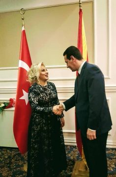 Амбасадорката на Република Турција во своето обраќање на дипломатскиот прием стави акцент на одличната соработка меѓу Македонија и Турција, со желби за продолжување на добрите односи меѓу двете држави и народи.