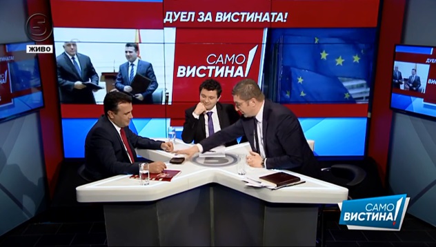 Претседателот на ВМРО-ДПМНЕ, Христијан Мицкоски, на крајот од ТВ дуелот на Канал 5 на Зоран Заев му подари Луј Витон паричник, како симболика на моменталната ситуација во која се наоѓа Македонија и граѓаните.