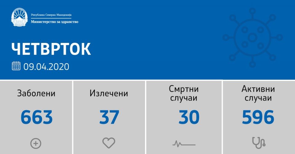 Со ова вкупната бројка на дијагностицирани пациенти со Ковид-19 во нашата земја изнесува 663 лица, соопштија од Министерството.