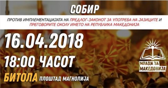 -Ние не спиеме по ходници, не реметиме настава со погрдни зборови. Не дојдовме да го упропастиме образовниот ритам ниту имаме нешто против просветните работници. Напротив, ние ги повикуваме сите да ни се приклучат, затоа што сметаме дека никој нема право да преговара во наше име за промена на нашето државно име и нашиот идентитет, никој нема право во наше име да воведува двојазичност на целата територија на Република Македонија и да спроведува референдум за уставни промени. Но, она што го видовме во факултетите беше страв кај професорите, кои со молба до нас доаѓаа да не ги објавуваме видеата, со молба доаѓаа и вработените да не ги лепиме плакатите затоа што му висела работата, деканите се јавуваа со прашања од типот како сме смееле, а секако знаат дека ние студентите, ние младите иднината на нашата држава смееме да се организираме и да размислуваме за подобро Македонско утре, а не за странско утре.Е баш затоа ние младите на 16.04 Понеделник во 18 часот ќе излезиме на плоштад Магнолија – Битола ќе се организираме и со студентски собир ќе испратиме порака дека повеќе вака не оди искана еден од организаторите на протестот на наставата на Факултетот за биотехнички науки во Битола.