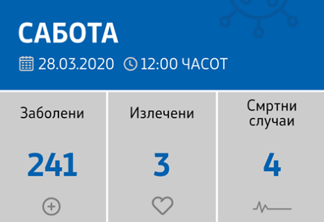 Во изминатите 24 часа се регистрирани 22 нови случаи на коронавирус во земјата. По градови: Скопје (9), Куманово (3), Струга (3), Тетово (2), Дебар (2), Прилеп (2), Битола (1). Со ова, вкупната бројка на дијагностицирани пациенти со КОВИД-19 денеска до 12.00 часот изнесува 241 лице, информираат од Министерство за здравство.