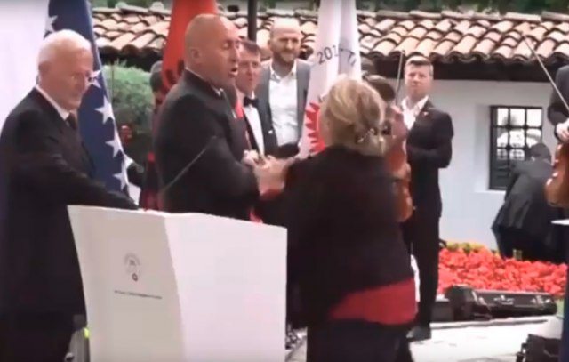 Косовскиот премиер Рамуш Харадинај, за време на одбележувањето на 140-годишнината од Призренската лига, дојде до судир на говорницата со еден жена.