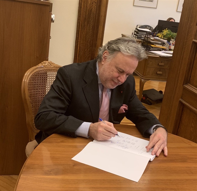 Алтернативниот министер за надворешни работи на Грција, Јоргос Катругалос ја потпиша ратификацијата на Договорот од Преспа.