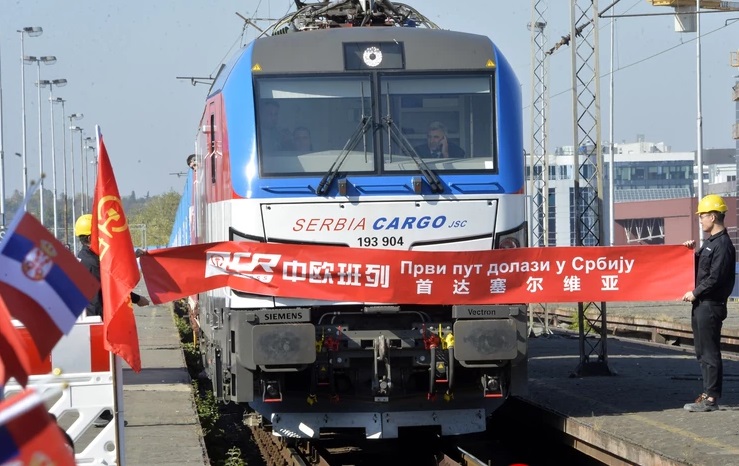 Товарен воз на Кинеските железници со опрема за изградба на брзата пруга во Србија, пристигна од Кина во Белград, а го пречекаа српскиот претседател Александар Вучиќ и кинескиот заменик министер за трговија Чен Кеминг.
