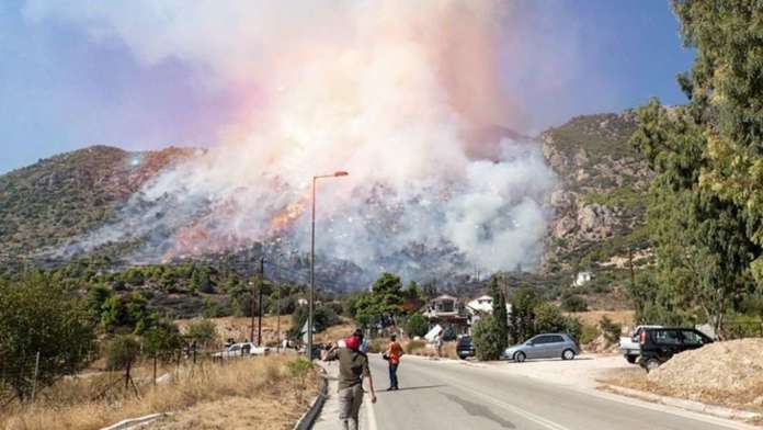 Очевидци за весникот „Катимерини“ изјавиле дека чадот стигнал до градот и дека пожарот се приближува до манастирот Агиос Патапиос во ридовите над Лутраки.