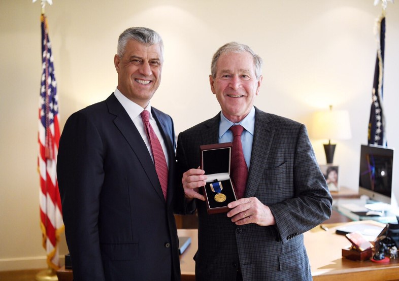 Косовскиот претседател, Хашим Тачи, во САД се состана со поранешниот американски претседател, Џорџ Буш и ја искористил приликата да го одликува со „Орден на независноста“ во знак на почитта што Косово ја има кон семејството Буш, пренесе косовската радио телевизија РТК.
