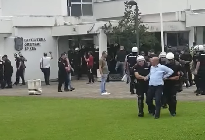 Во акција на специјалните полциски сили на црногорската полиција, кои на сила влегле во општинските простории, уапсен е градоначланикот на Будва, Марко Царевиќ.