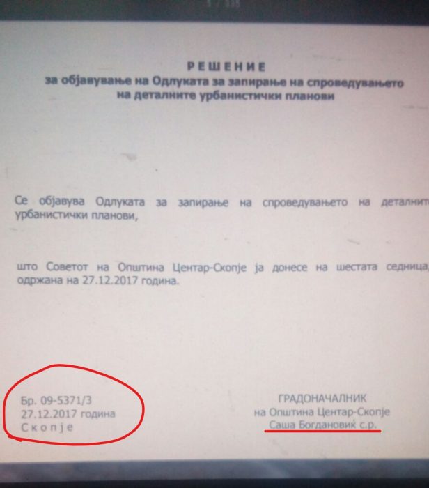 Од она што го дознава Лидер од извори во Општина Центар е дека иако одлуката е донесена на шестата седница на совет на 27.12.2017 година сепак градоначалникот Богдановиќ знаел дека на таа седница ќе се прогласи мораториум и тој само на неколку часа пред почнувањето на седницата потишал неколку одобренија за градба. Секако ваквото нешто го знае и “независната“ претседателка на советот на Општина Центар Јана Белчева Андреевска која како претставник на здружението во одбрана на Дебар Маало беше најгласна околу бесправното градење на објекти во Центар.