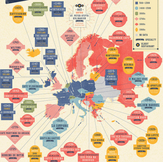 Сајтот направи карта или атлас со информации за најстарите активни ресторани во скоро сите земји во светот, што им ги препорачува на љубителите на историјата, патувањата и вкусната храна.