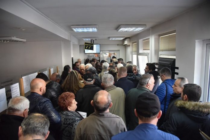 Навалица од луѓе во една од бараките на Град Скопје. Стотици граѓани побрзаа да аплицираат за мерката со која се субвенционира половина од вкупната вредност на уредот, но не повеќе од 15.000 денари.