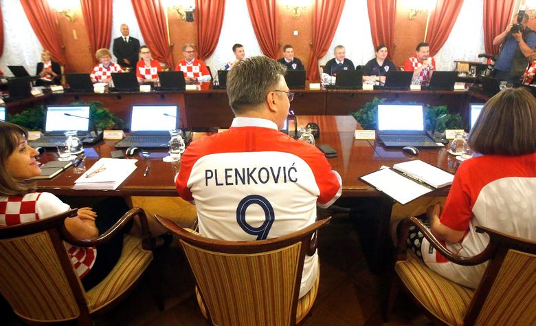 Еуфоријата утрово се чувствуваше и во Владата на Хрватска каде за време на владината седница министрите и премиерот биле облечени во фудбалски дресови.