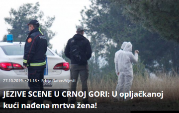 watch_later27. октомври 2019. @ 23:29 Ужасна сцена во Црна Гора: Во ограбена куќа пронајдена мртва жена